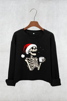 Christmas Skeleton Hot Coffee Crop Sweatshirt For Women
