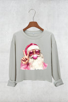 Retro Santa Christmas Blowing Bubble Crop Sweatshirt For Women