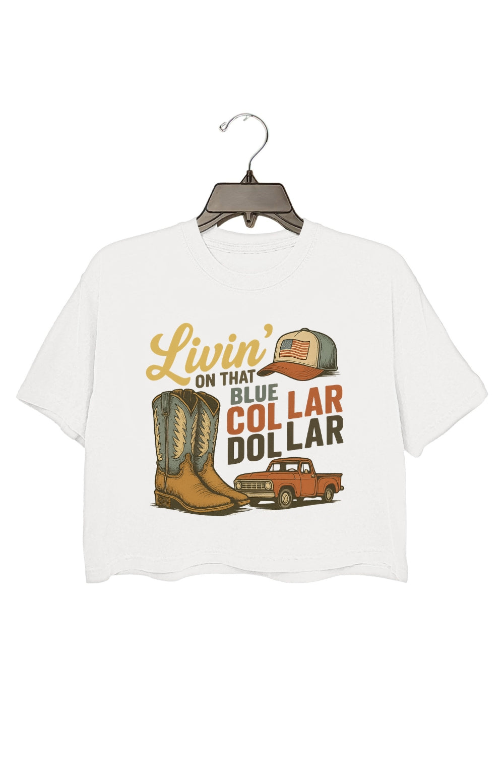 Living On That Blue Collar Dollar Western Crop Top For Women