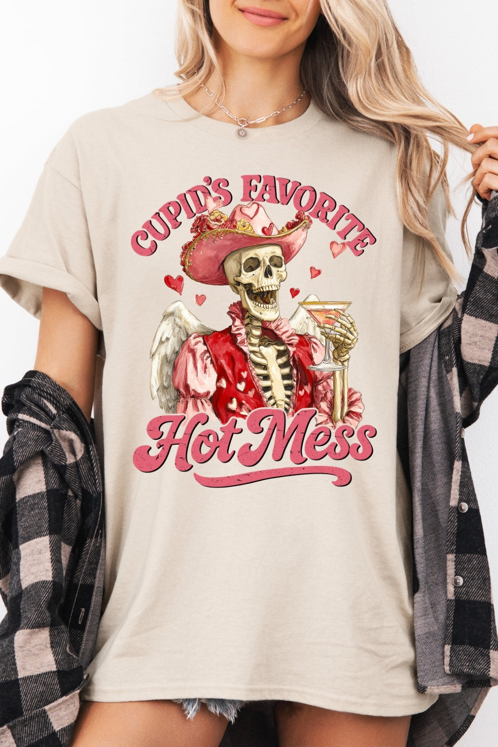 Cupid's Favorite Hot Mess Skull Crop Sweatshirt For Women