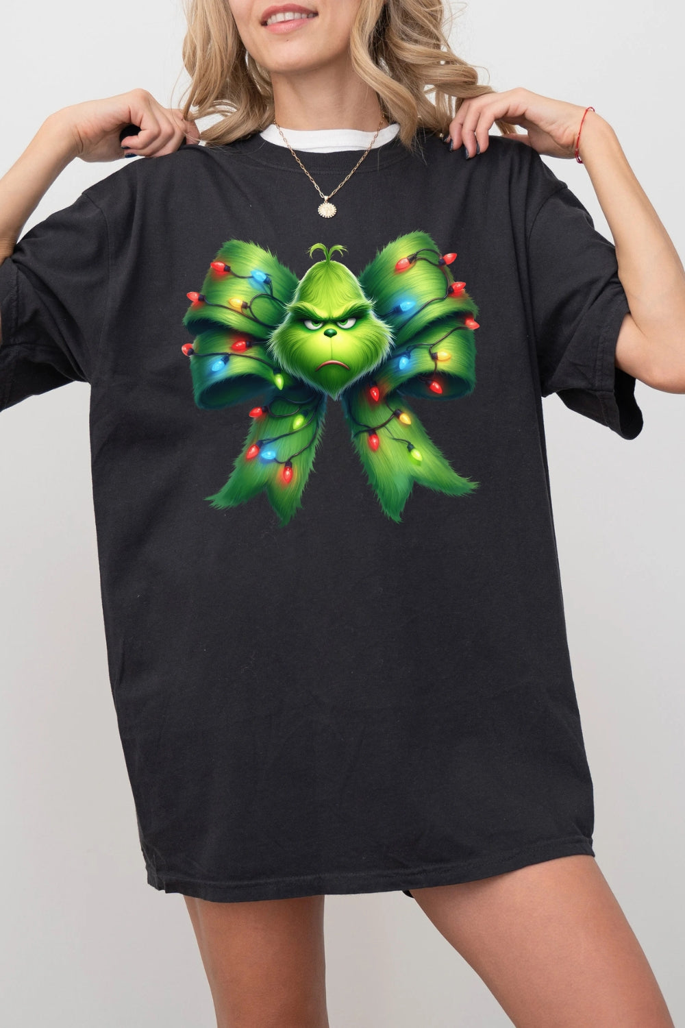 Christmas Green Guy Bow Tee For Women