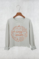 Cozy Season Autumn Leaves Crop Sweatshirt For Women