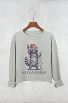 Feral and Festive Christmas Raccoon Crop Sweatshirt For Women