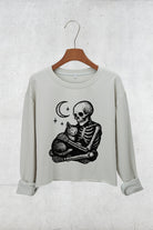 Gothic Skeleton Hugging Cat Crop Sweatshirt For Women