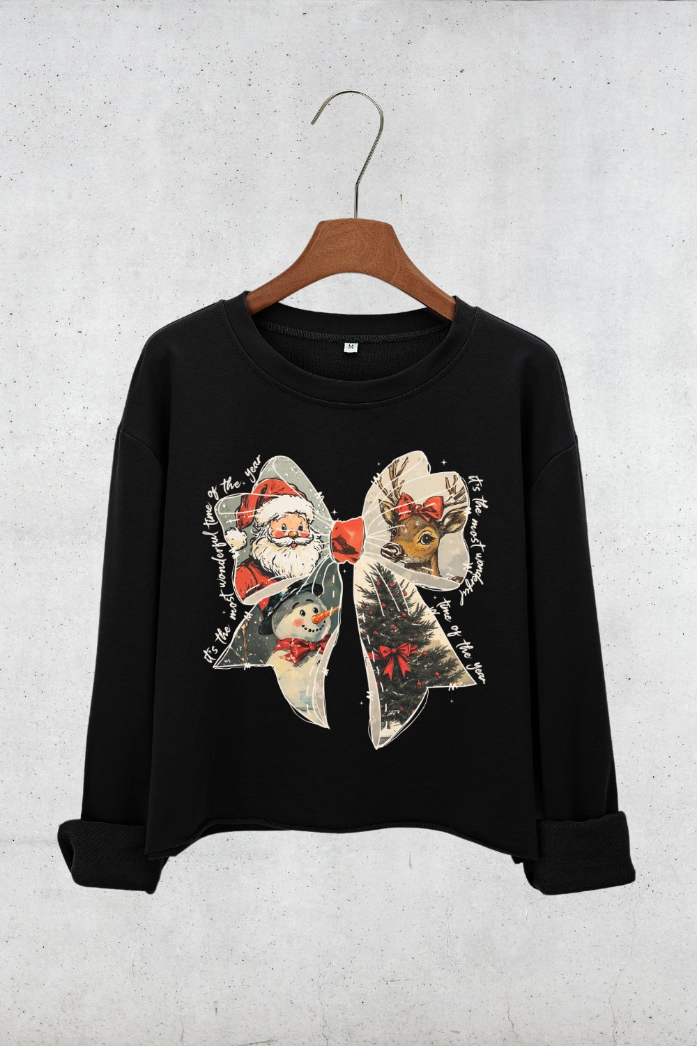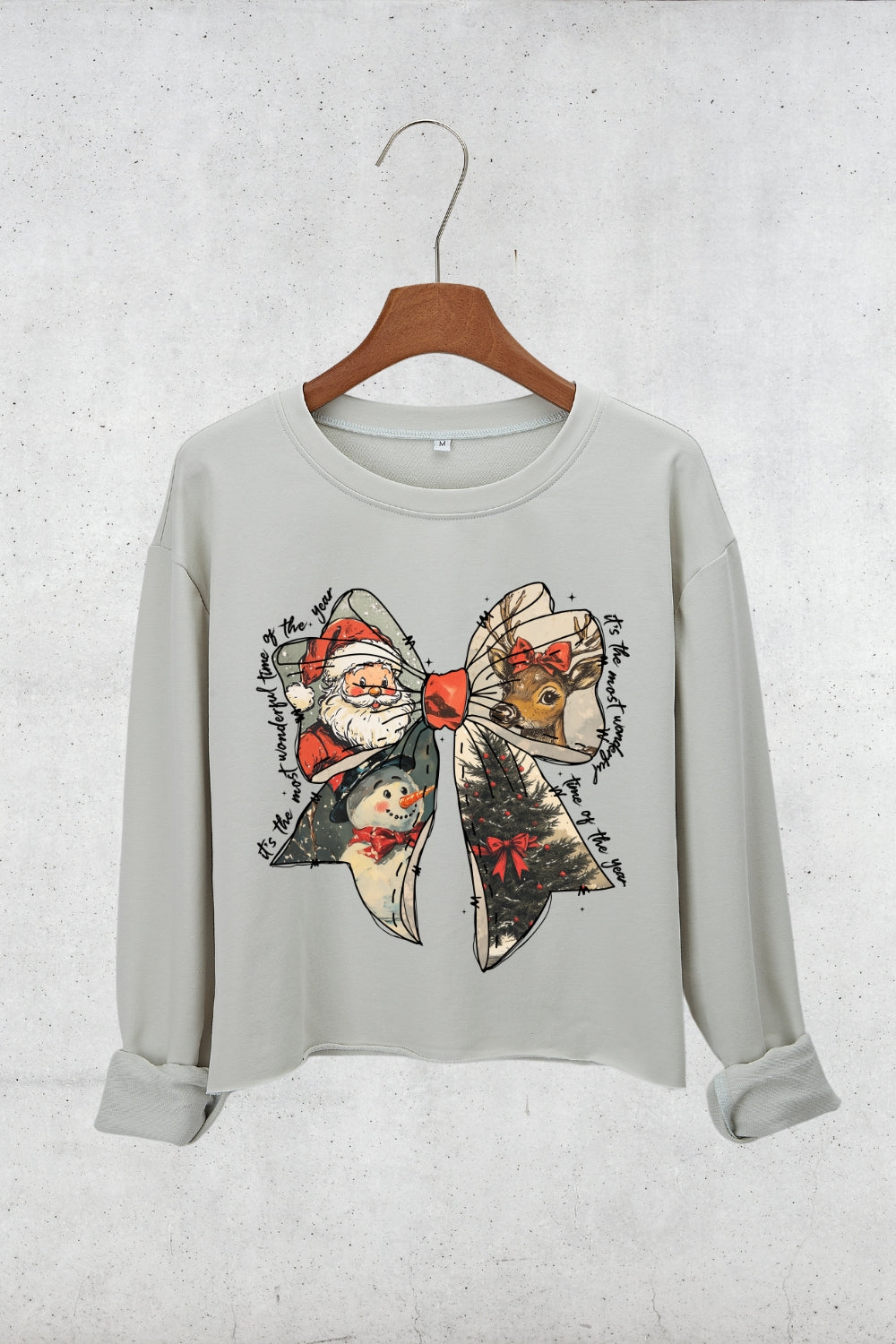 It's The Most Wonderful Time Of The Year Christmas Bow Crop Sweatshirt For Women