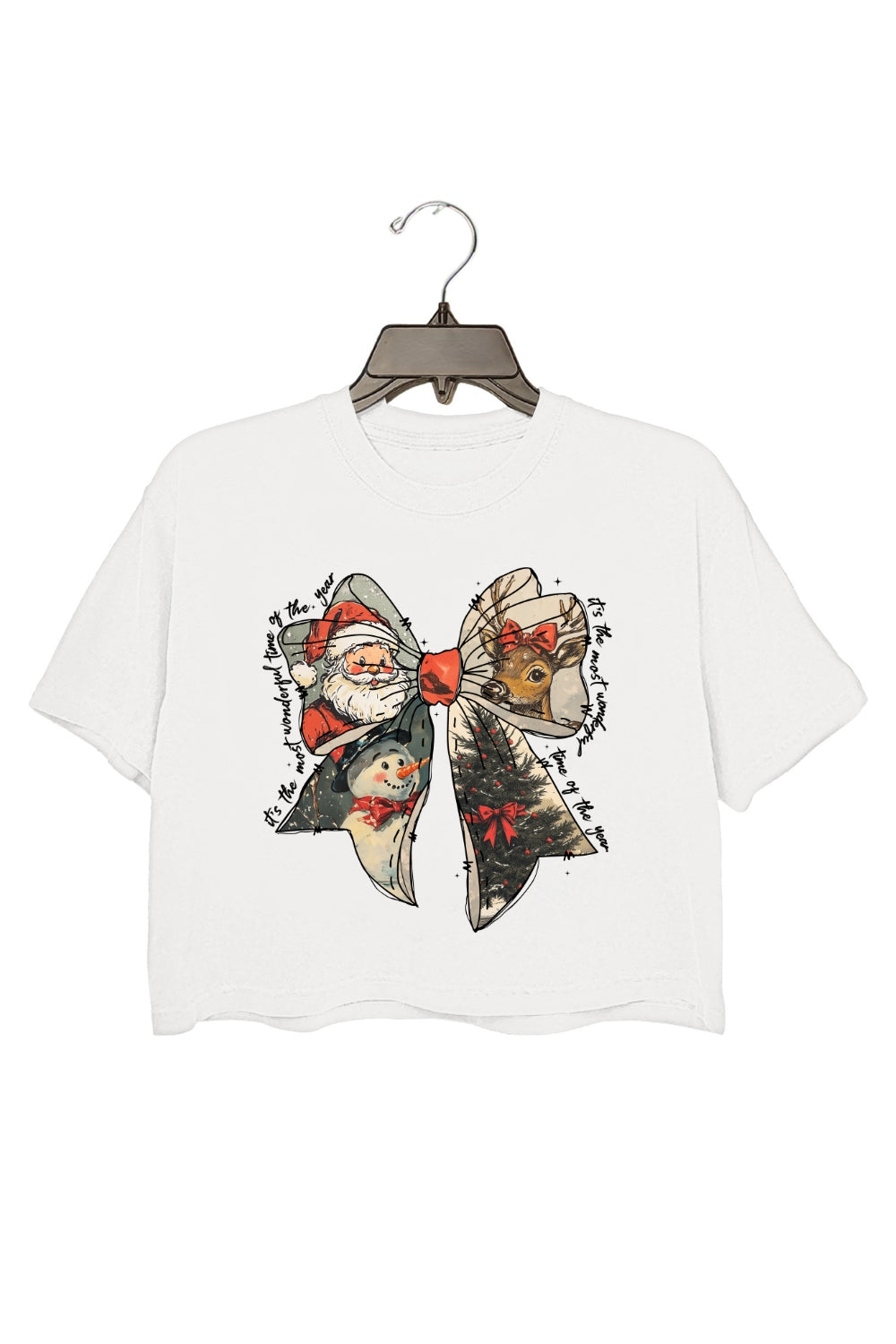 It's The Most Wonderful Time Of The Year Christmas Bow Crop Top For Women