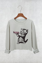 Kitten Pointing A Gun Crop Sweatshirt For Women