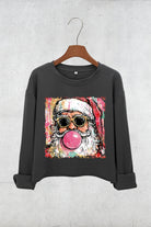 Preppy Santa Clause Blowing Bubble Crop Sweatshirt For Women