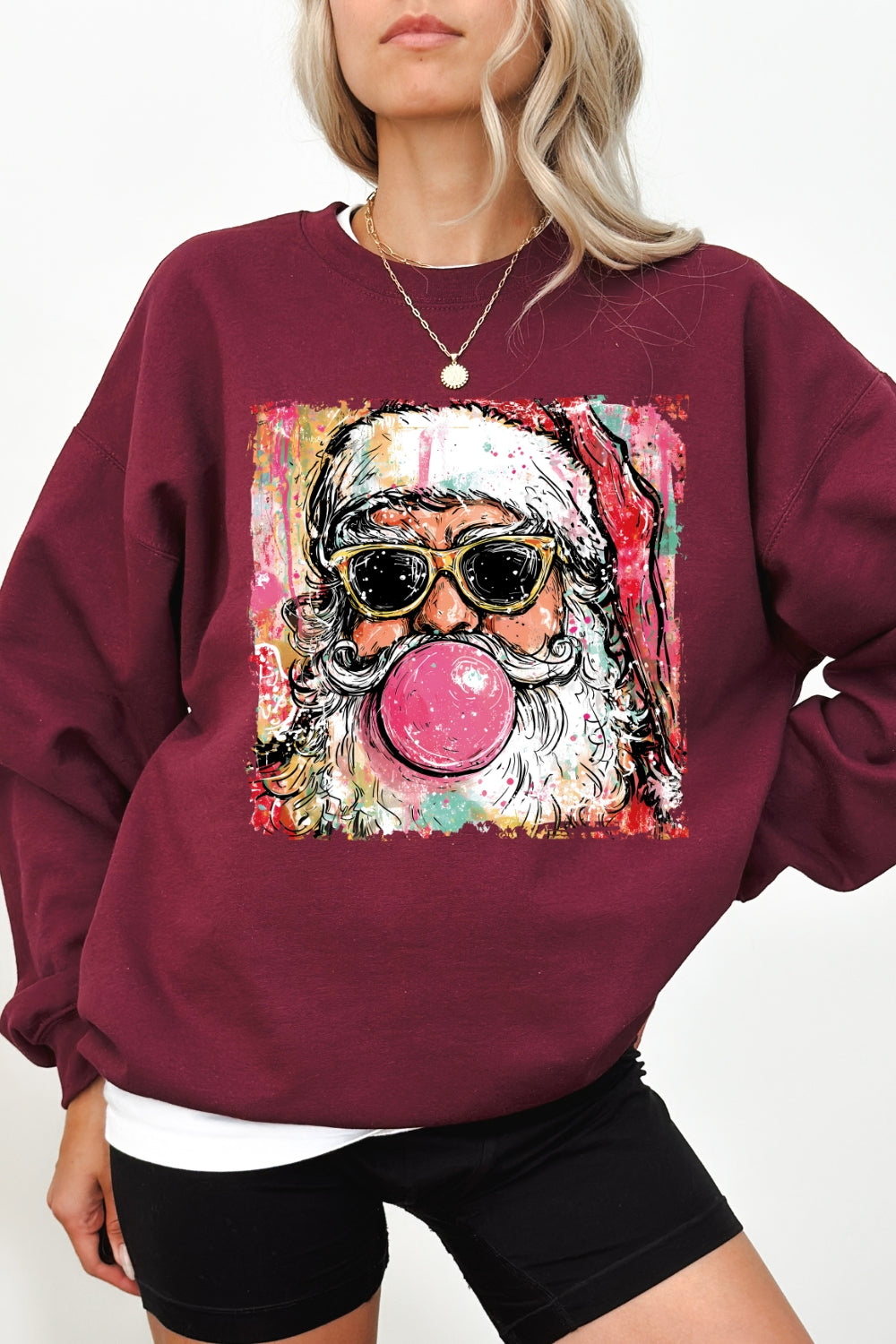 Preppy Santa Clause Blowing Bubble Sweatshirt For Women