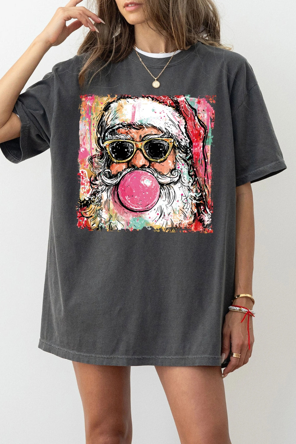 Preppy Santa Clause Blowing Bubble Tee For Women