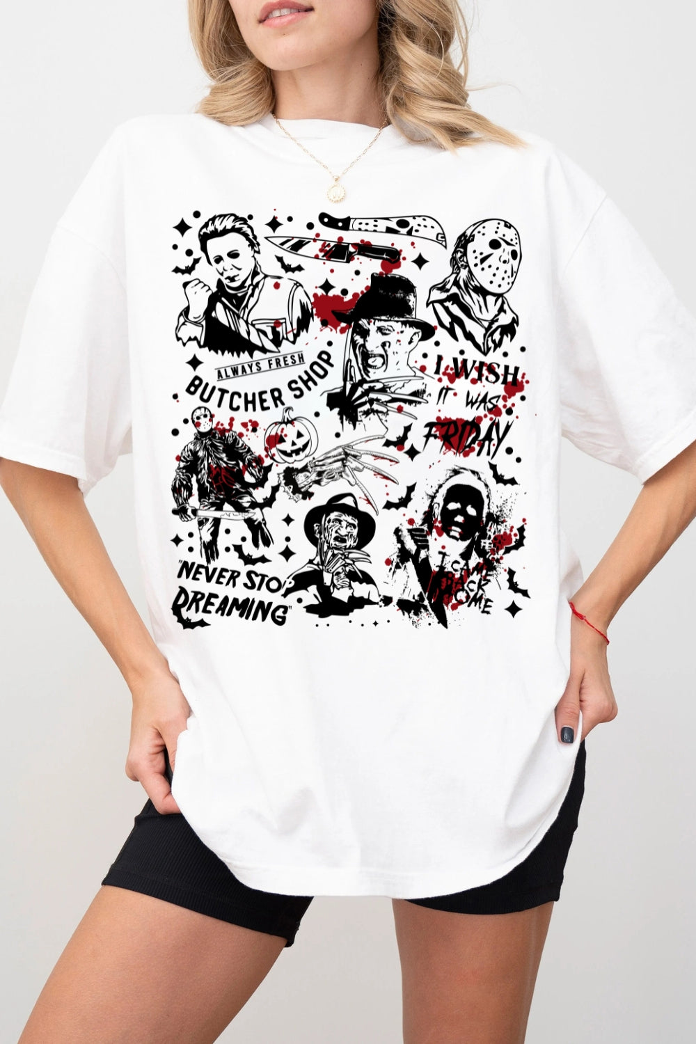 Retro Halloween Horror Movies Sublimation Tee For Women