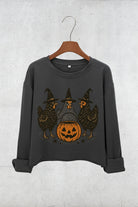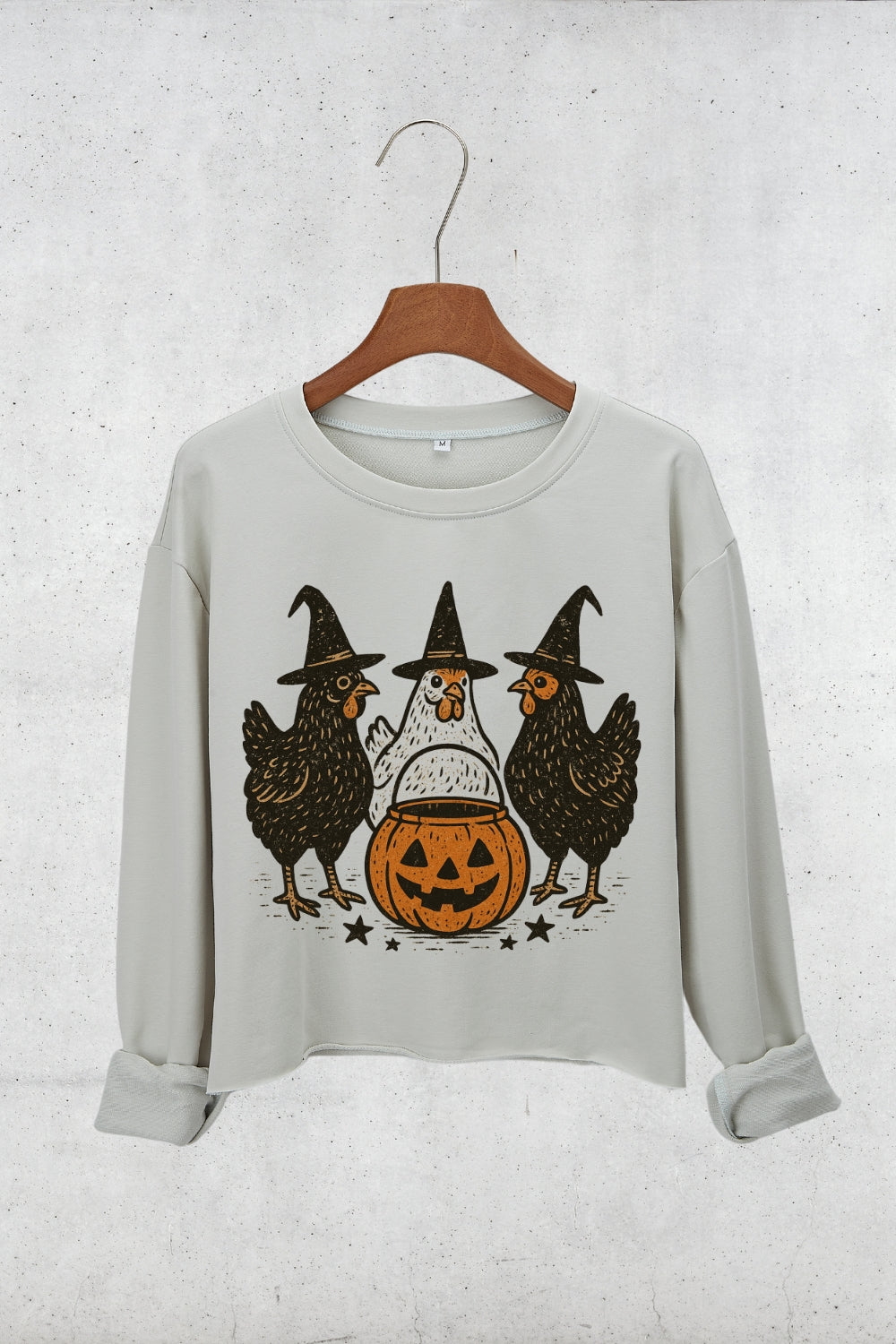 Retro Pumpkin Chicken Fall Crop Sweatshirt For Women