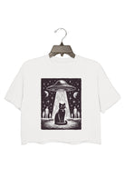 Retro Space UFO Cat Crop Top For Women