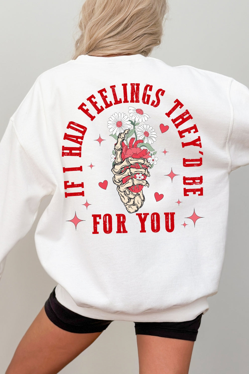 Retro Valentines Skeleton Heart Sweatshirt For Women