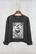 The Coffee Tarot Card Skeleton Crop Sweatshirt For Women