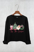 Tis The Season Santa Coffee Christmas Crop Sweatshirt For Women