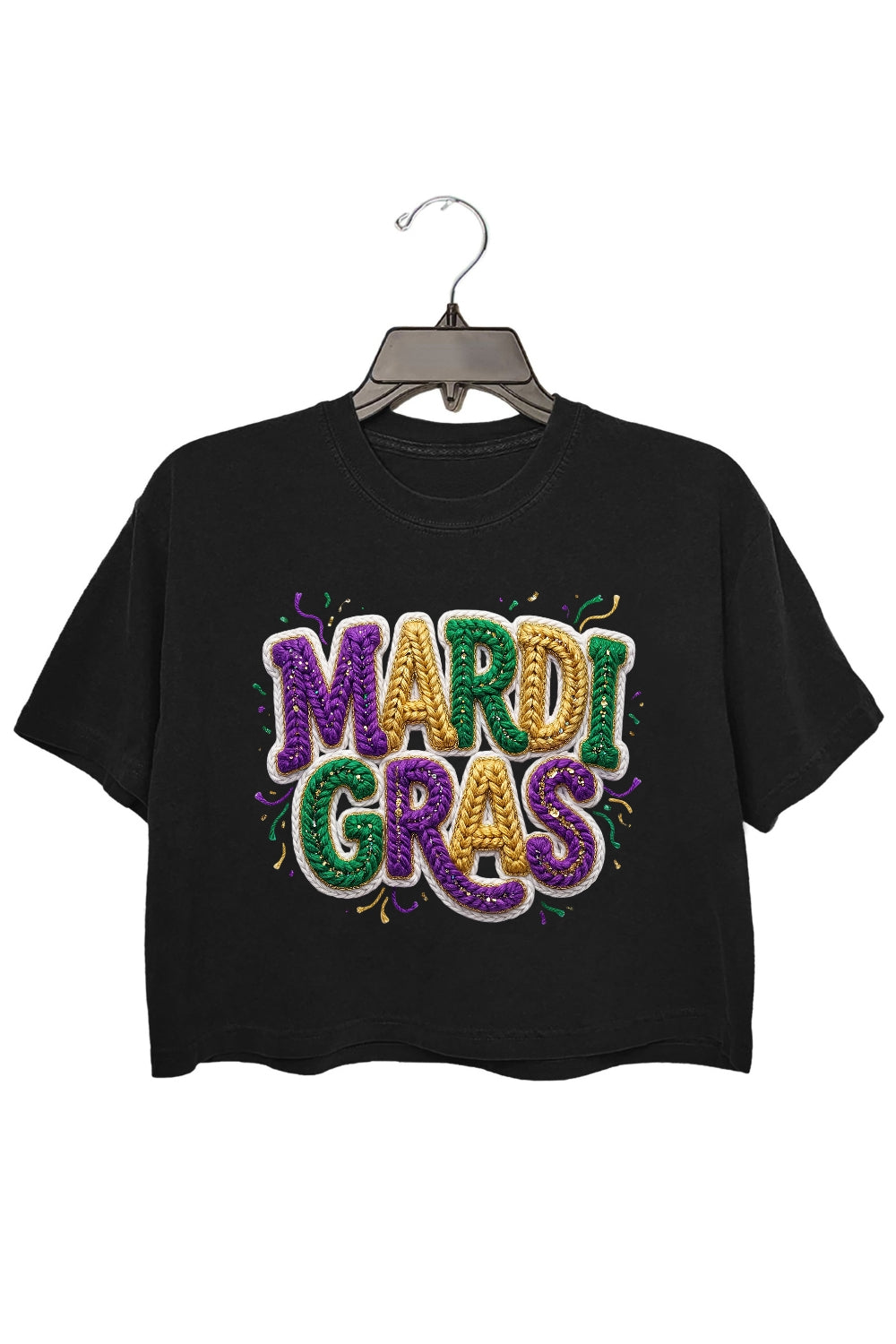Faux Yarn Mardi Gras Print Crop Top For Women