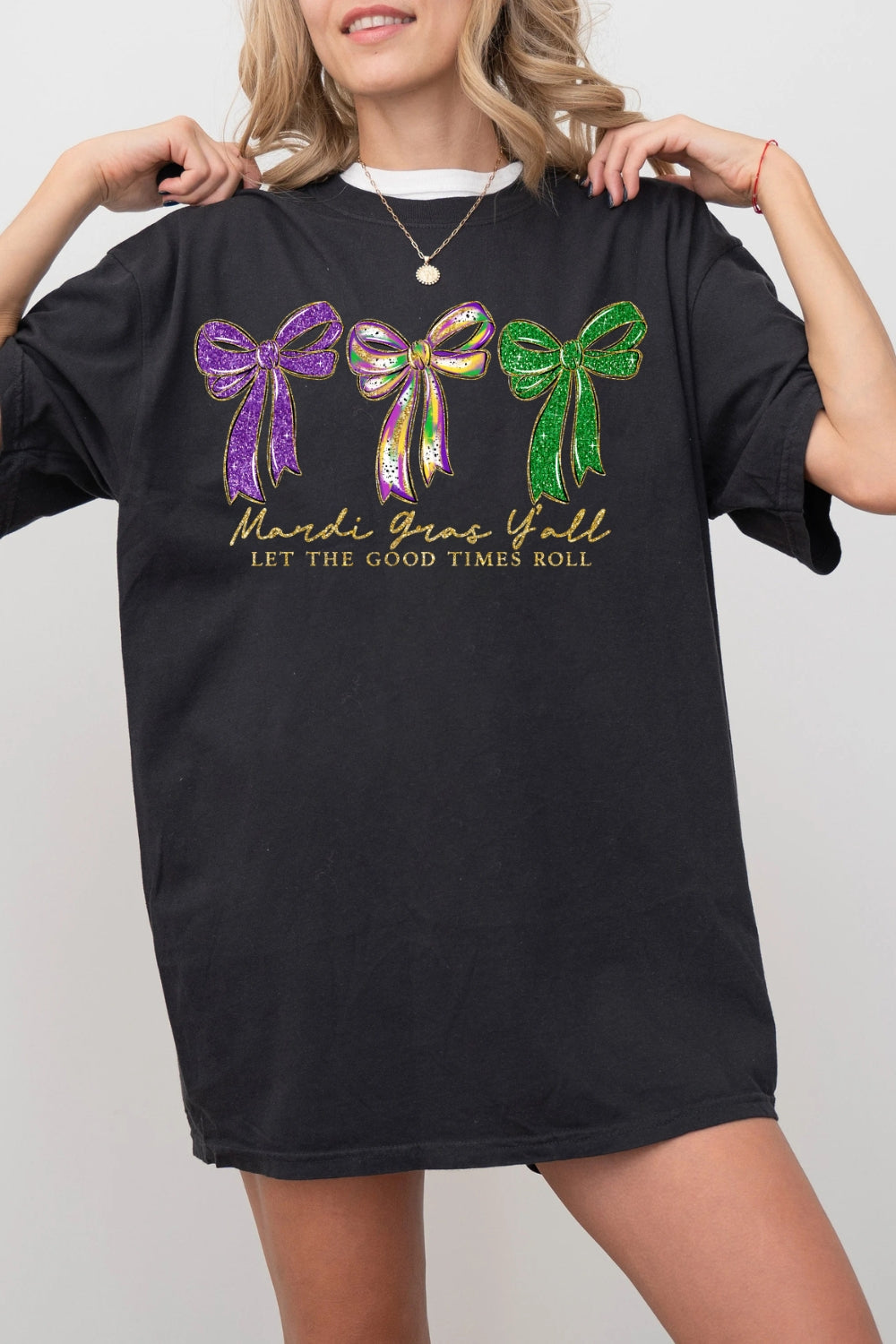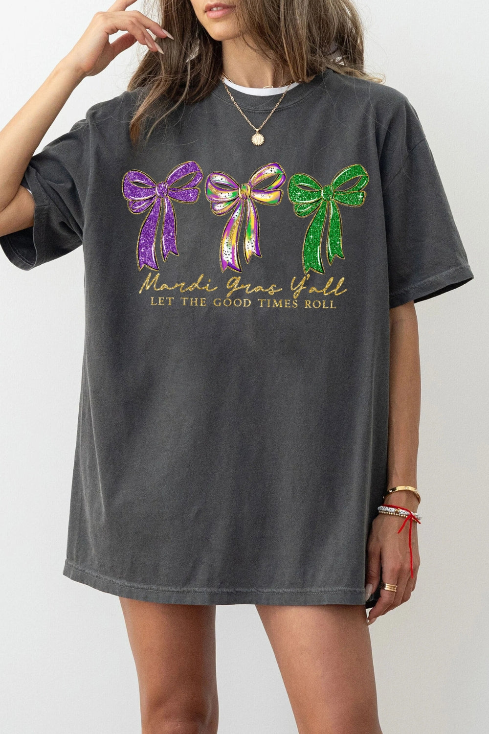 Preppy Mardi Gras Y'all Bows Tee For Women