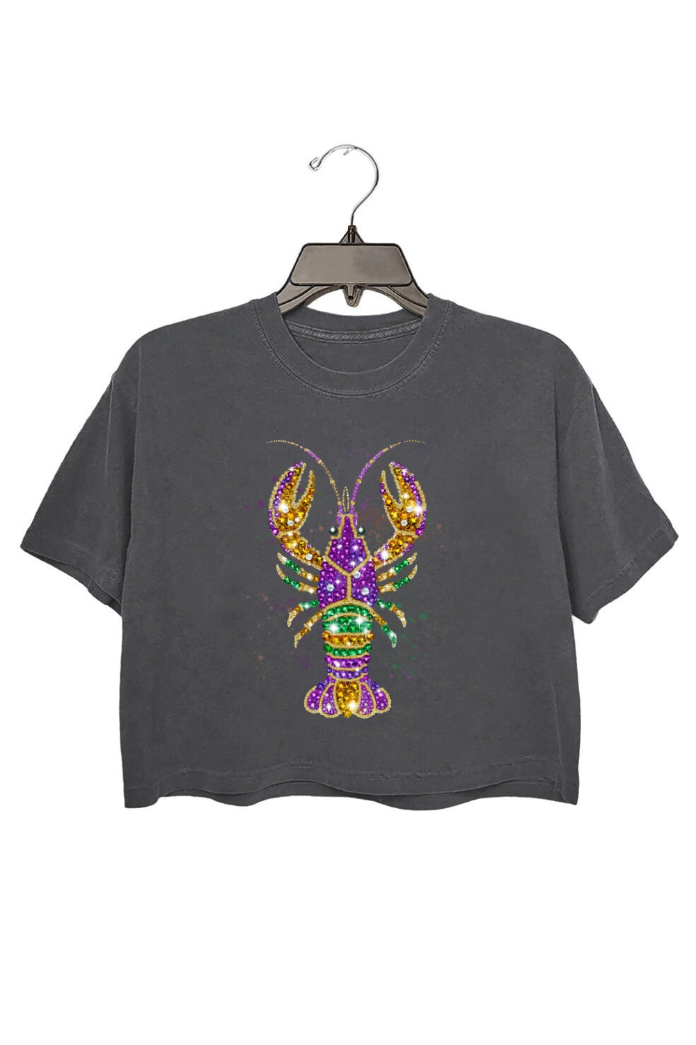Rhinestone Mardi Gras Crawfish Print Crop Top For Women