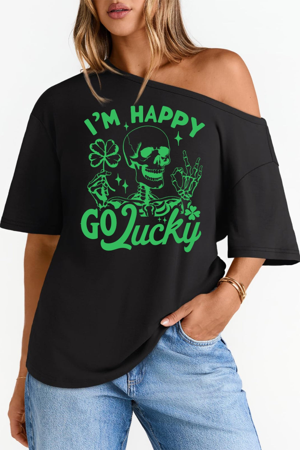 I'm Happy Go Lucky St Patrick's Skeleton Crop Top For Women