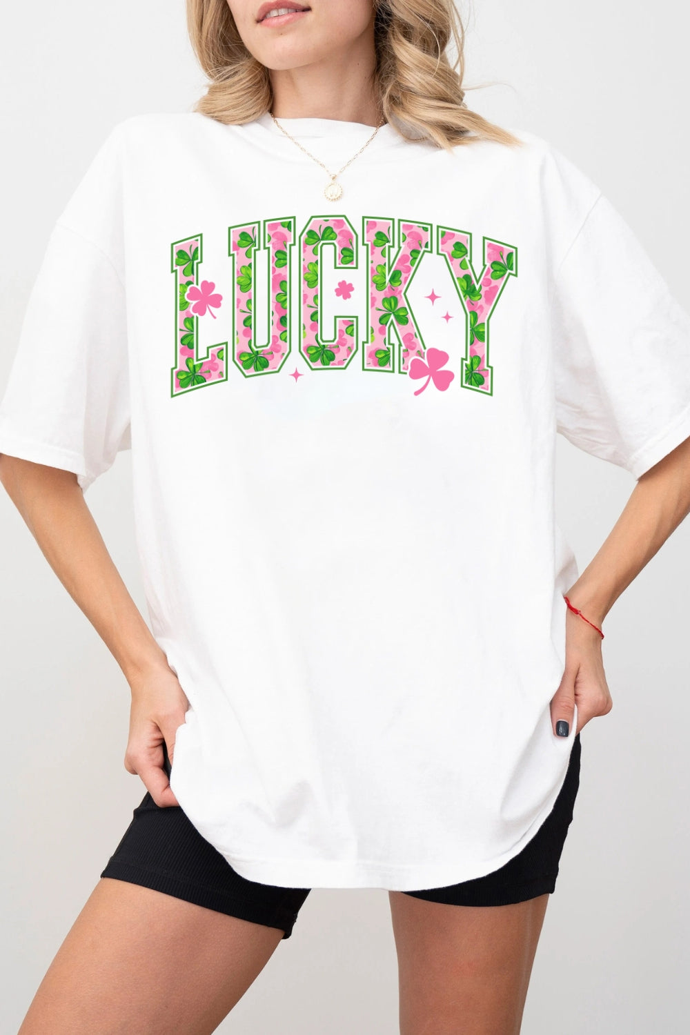 Pink Shamrock Lucky St Patrick's Day Tee For Women