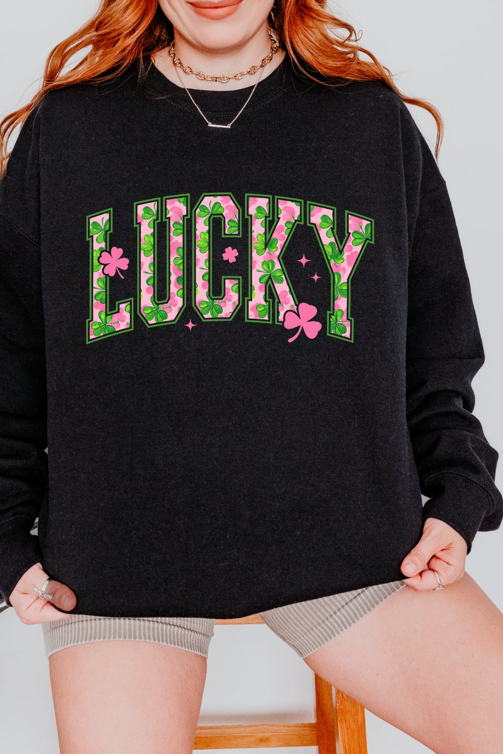 Pink Shamrock Lucky St Patrick's Day Sweatshirt For Women