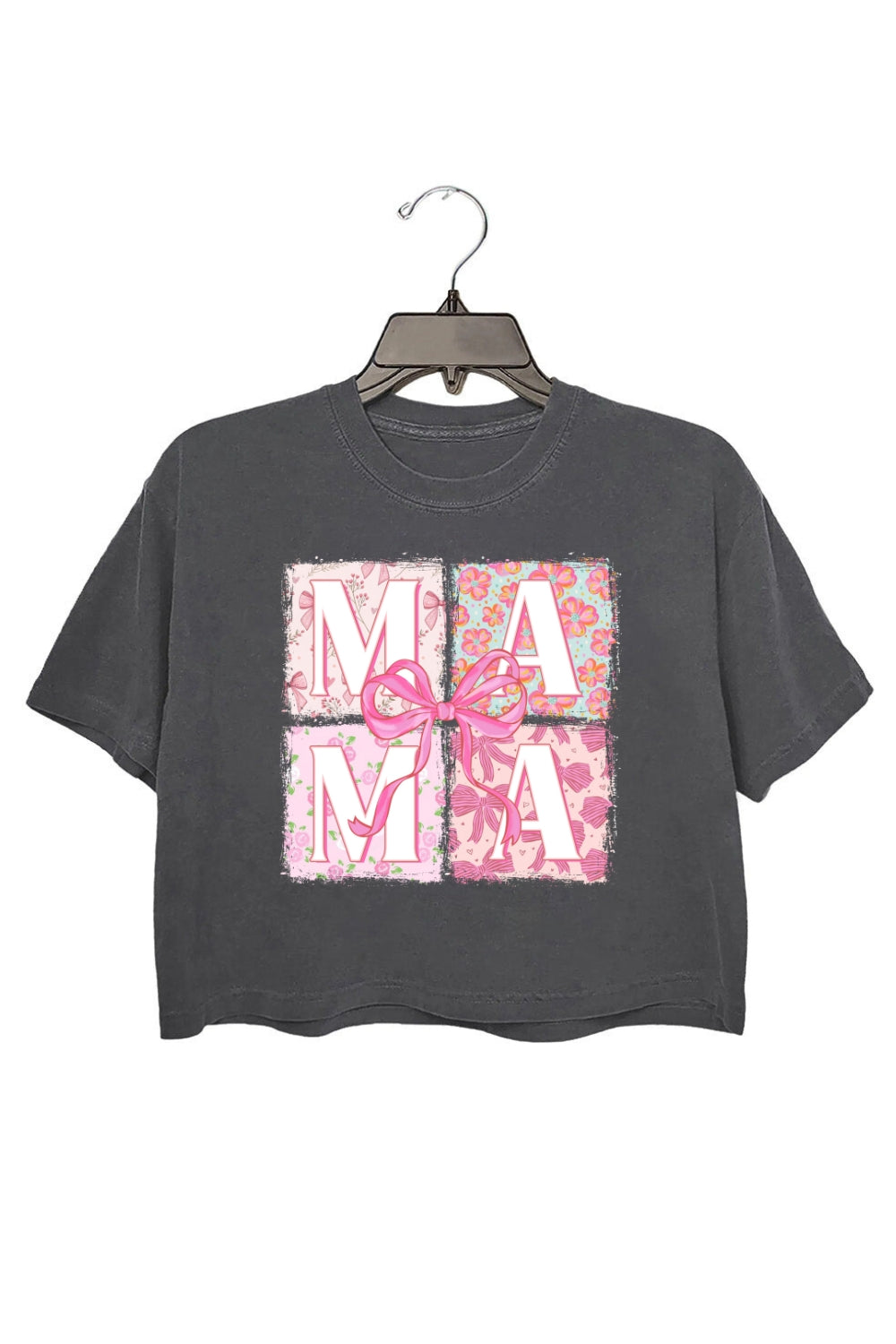 Retro Floral Mama Coquette Bow Crop Top For Women