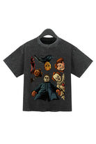 Retro Halloween Characters Scary Movie Washed Crop Top For Women