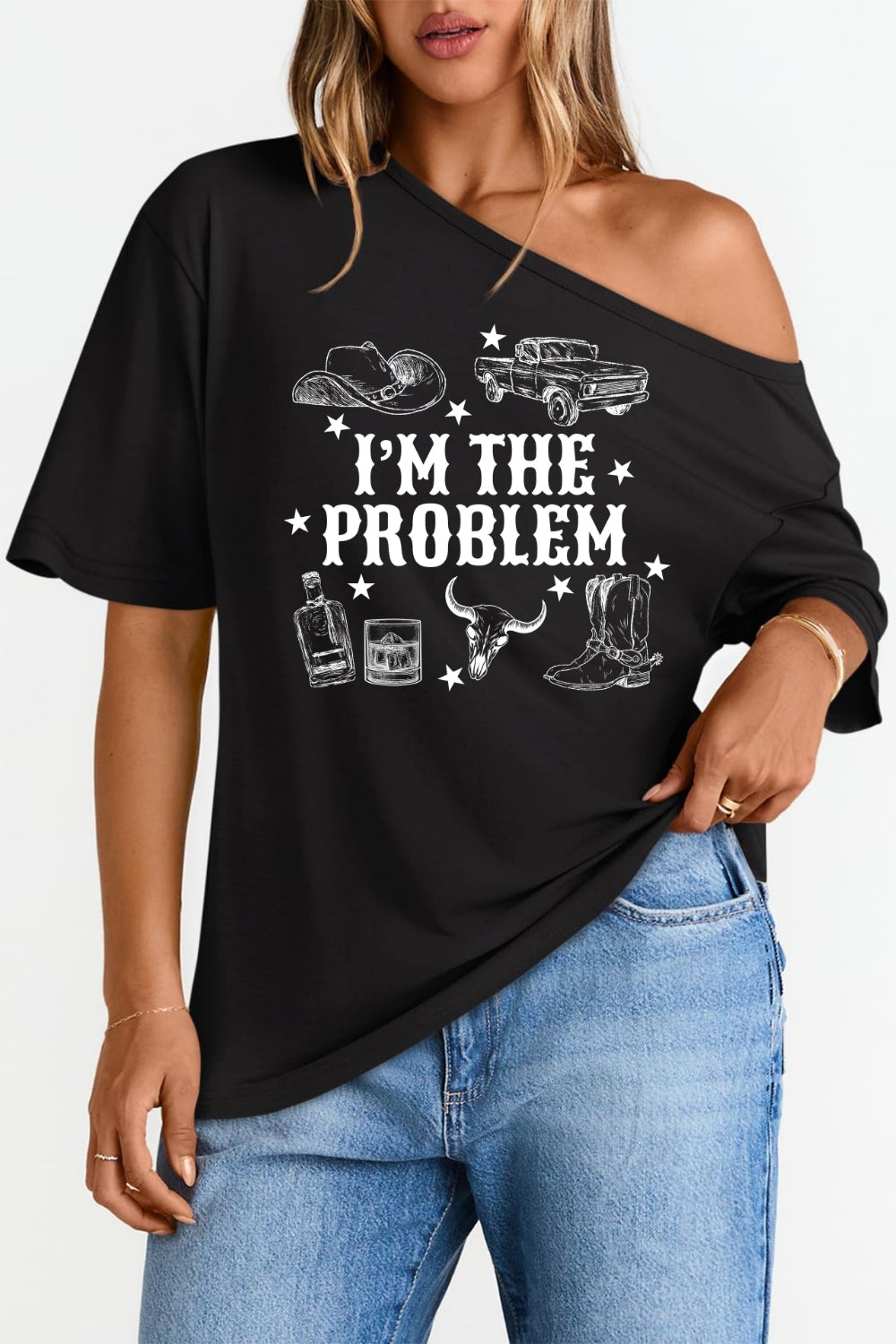 I'm The Problem Western Cowboy Off The Shoulder Tee For Women