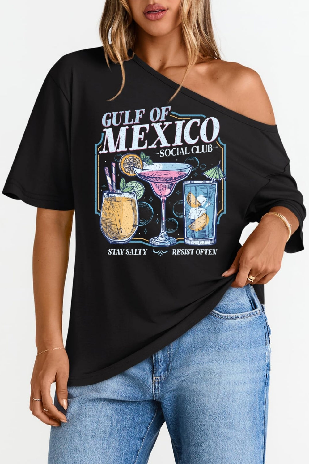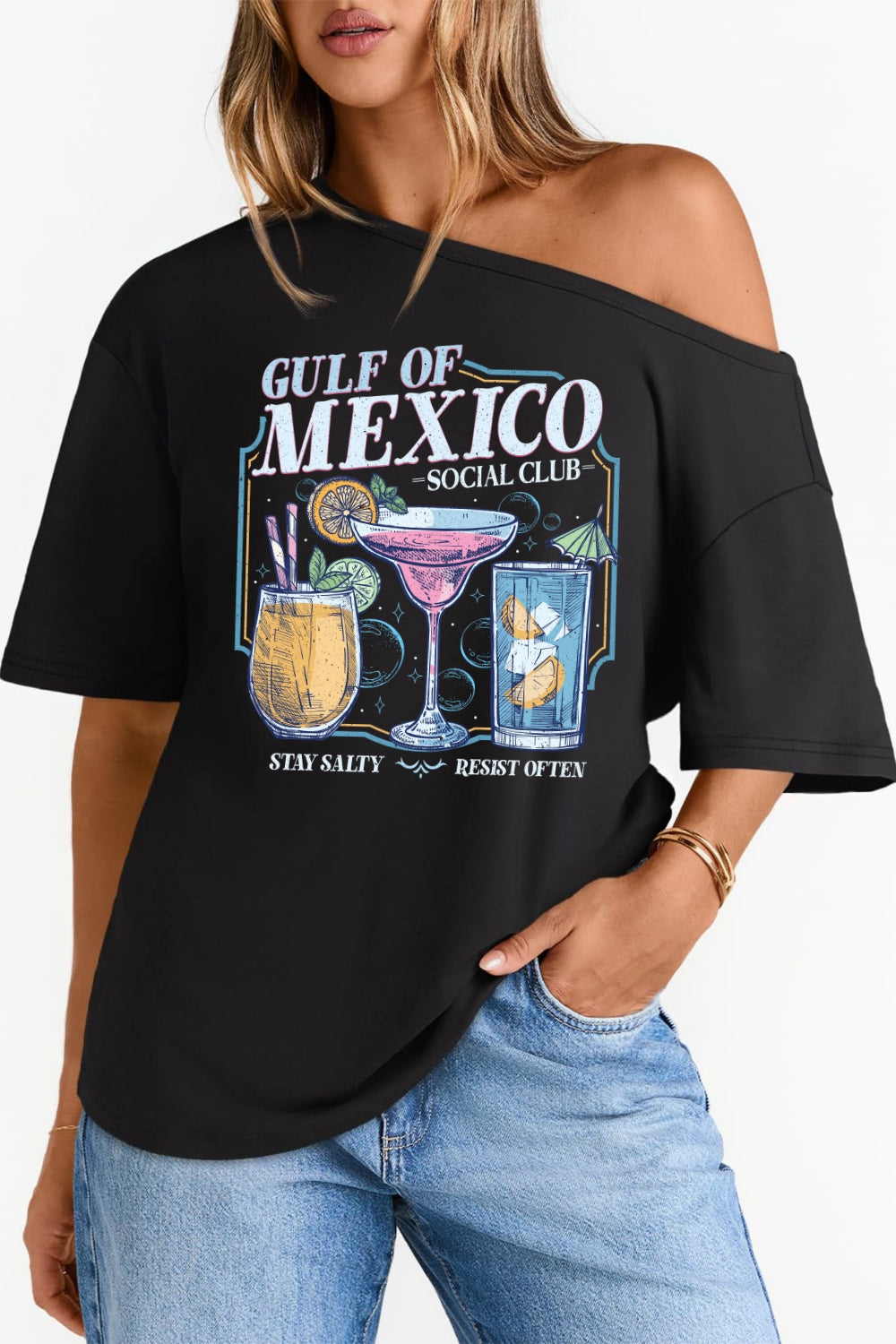 Gulf Of Mexico Social Club Stay Salty Off The Shoulder Tee For Women