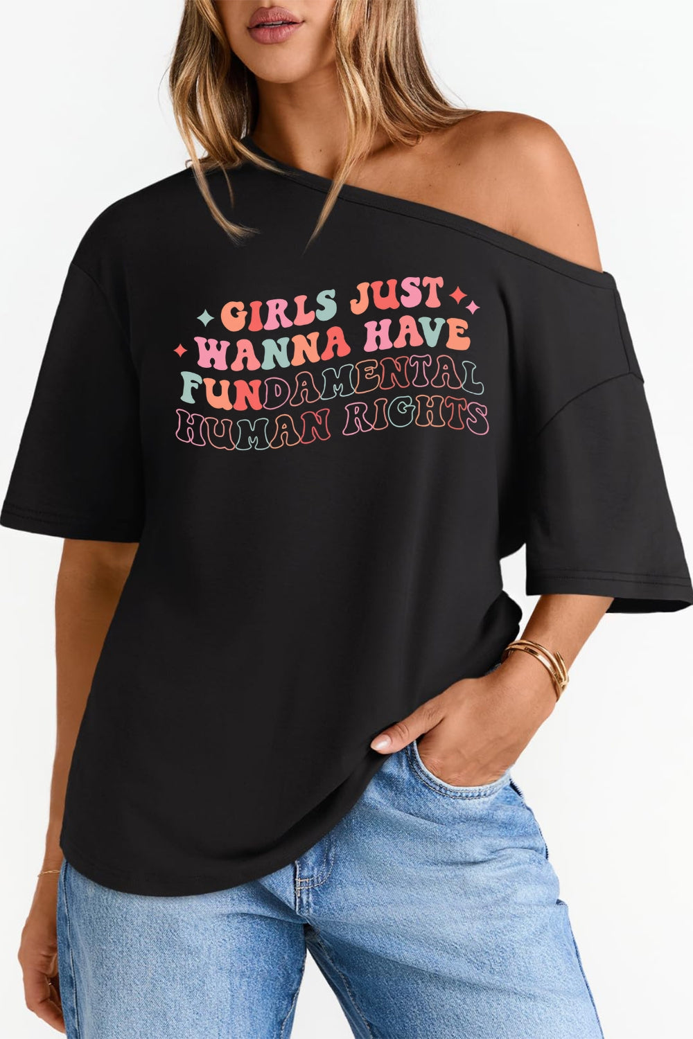Girls Just Wanna Have Fundamental Human Rights Off The Shoulder Tee For Women