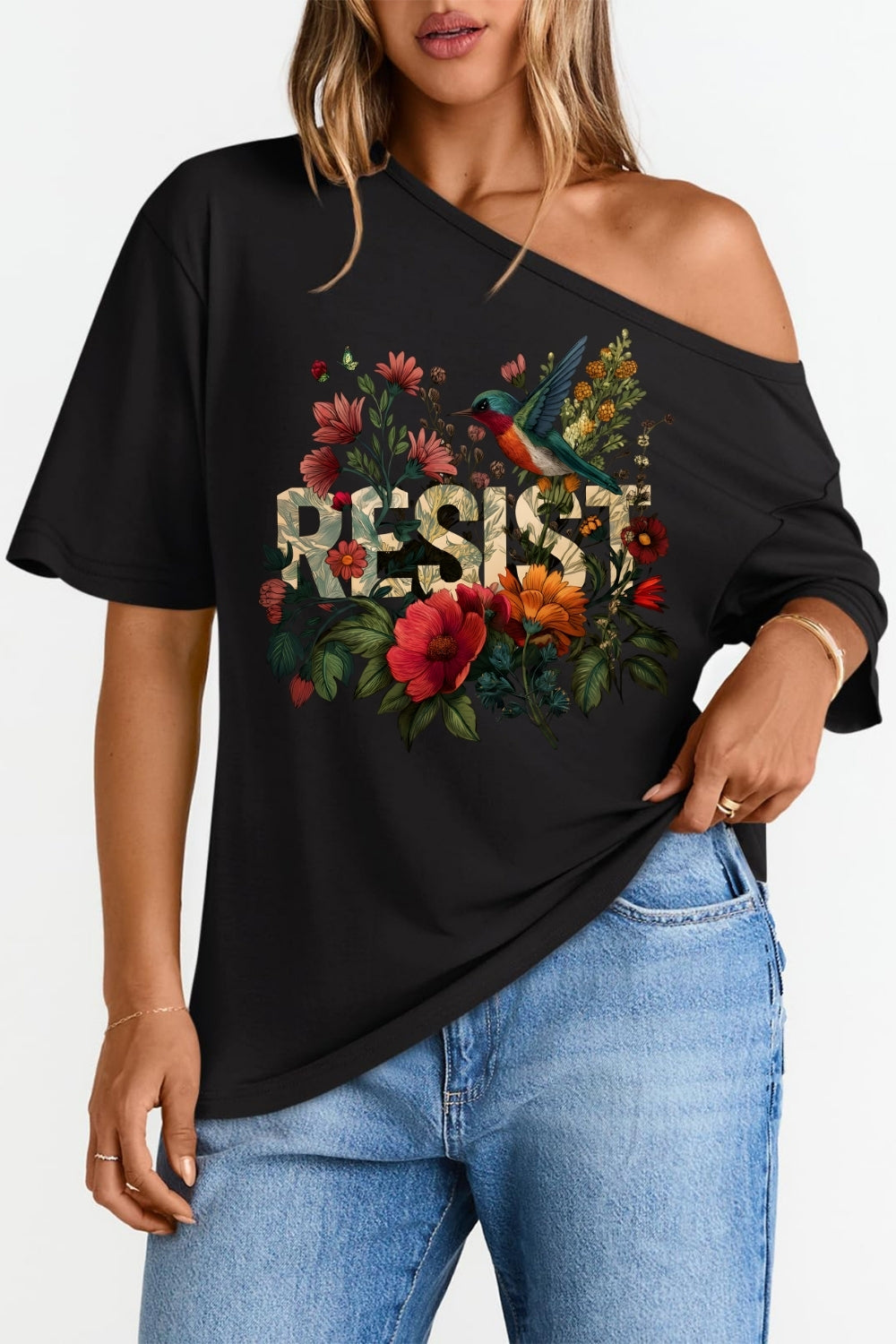 Retro Resist Bird Floral Off The Shoulder Tee For Women