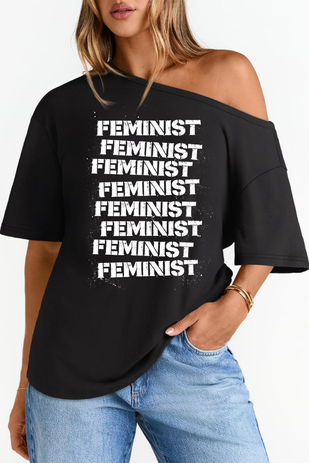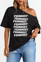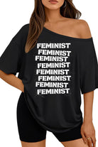 Feminist Print Design Off The Shoulder Tee For Women