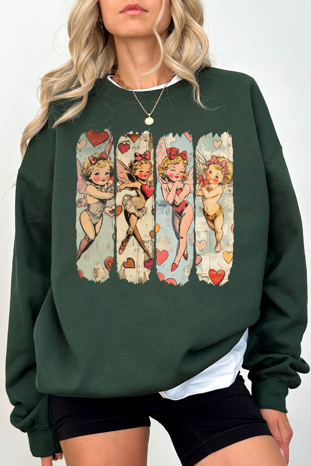 Retro Valentine Baby Cupid Sweatshirt For Women