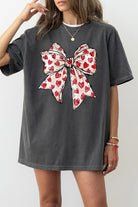 Retro Heart Valentine's Day Coquette Bow Tee For Women