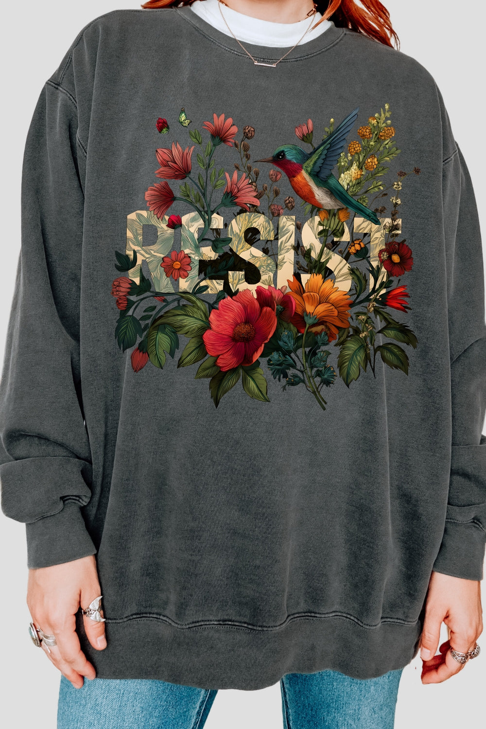 Retro Resist Bird Floral Sweatshirt For Women