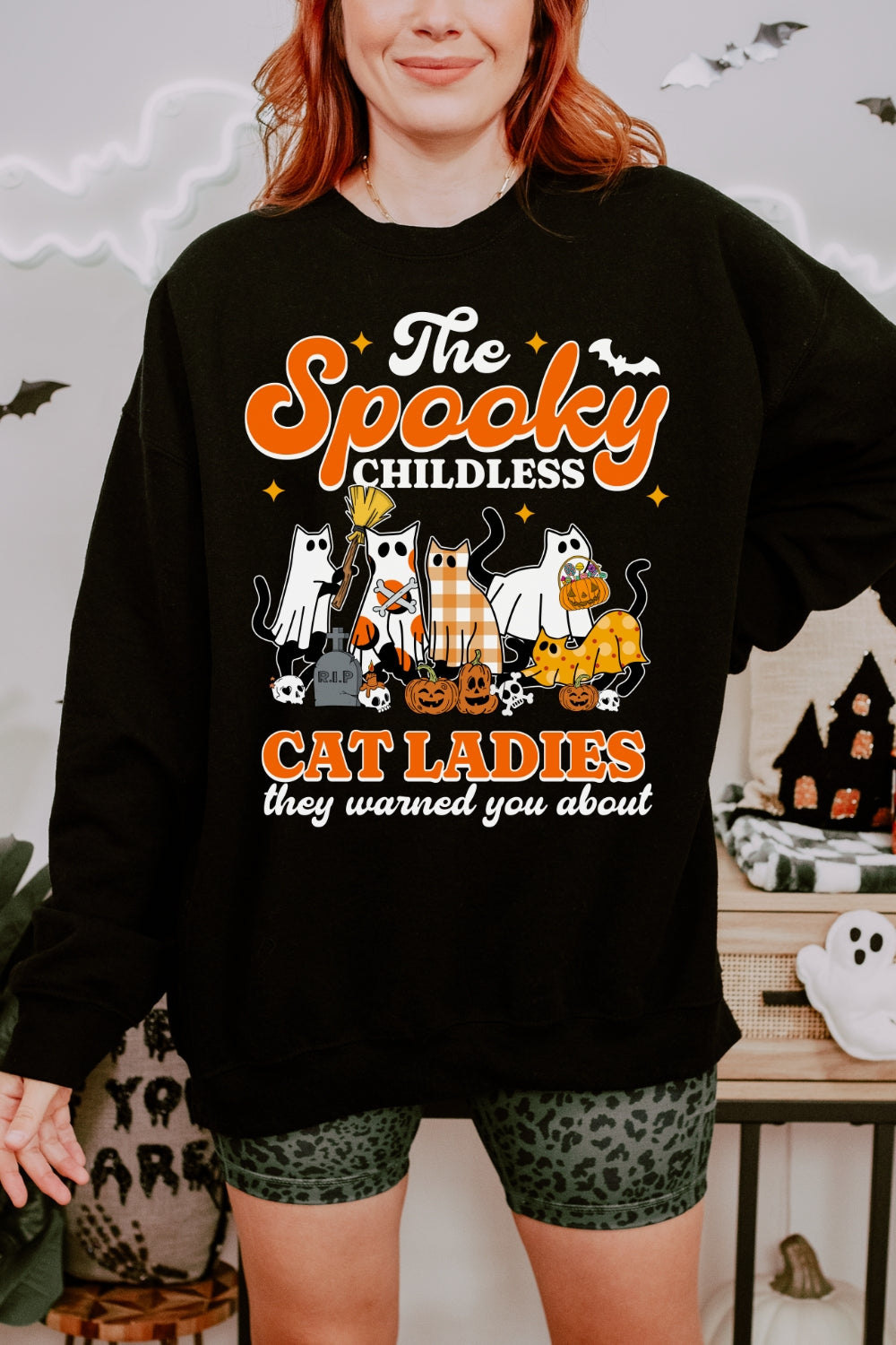 Spooky Childless Cat Lady Sweatshirt For Women