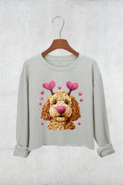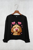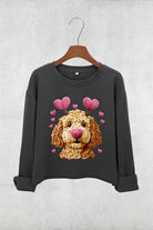 Valentines Dog Heart Faux Yarn Print Crop Sweatshirt For Women