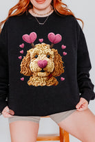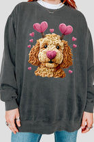 Valentines Dog Heart Faux Yarn Print Sweatshirt For Women